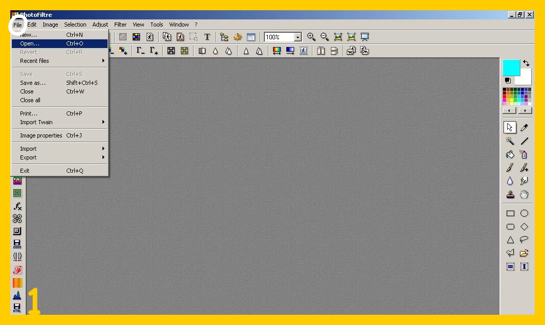 1. aprite la vostra immagine: File – Apri (FILE – OPEN) cercando solo che, se la vostra immagine si sviluppa in verticale, essa non sia eccessivamente lunga dato che alla fine la lunghezza raddoppierà (imm.1)![]()