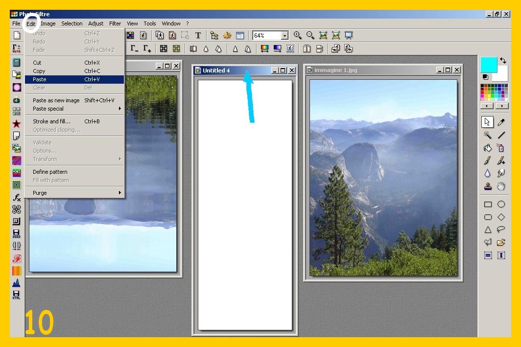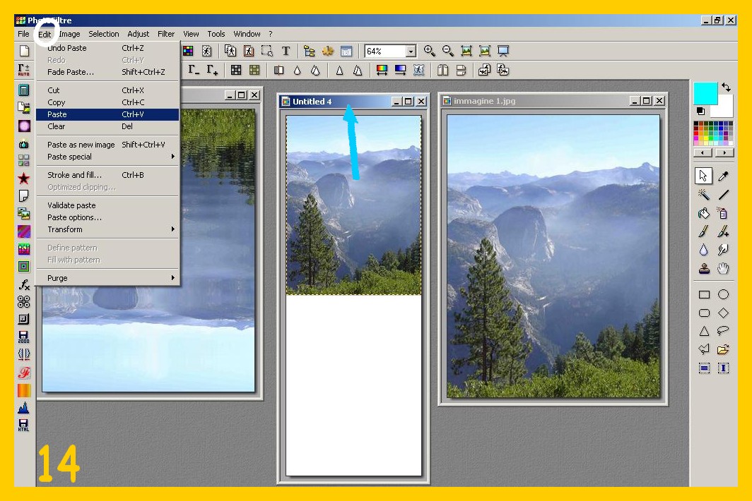 14. Toccate ora il documento dove avete incollato in alto la prima immagine, controllate che sia attivo e di nuovo Modifica – Incolla (EDIT – PASTE) (imm. 14) ![]()