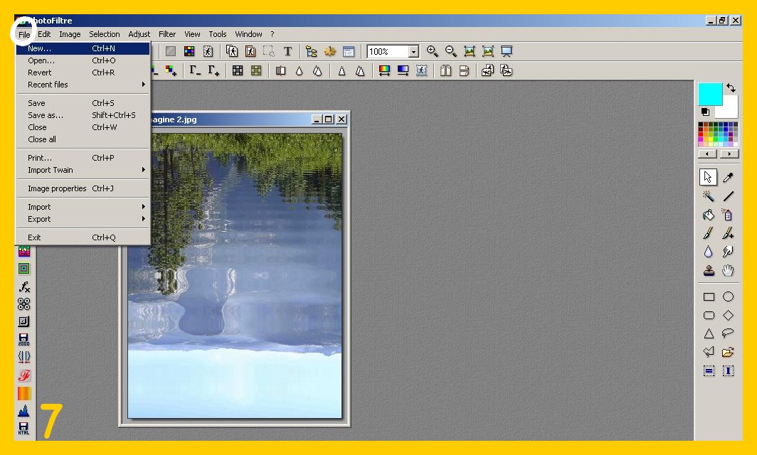 4. Ora dovete fare una simmetria verticale della vostra immagine, perciò cliccate su Immagine e Simmetria verticale (IMAGE – FLIP VERTICAL) (imm. 4) e vi troverete con la vostra immagine rovesciata. ![]()