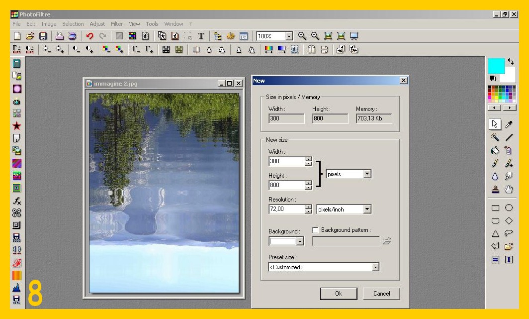 e mettete le misure di questa che sarà poi la vostra immagine finale (imm. 8 ) ![]()