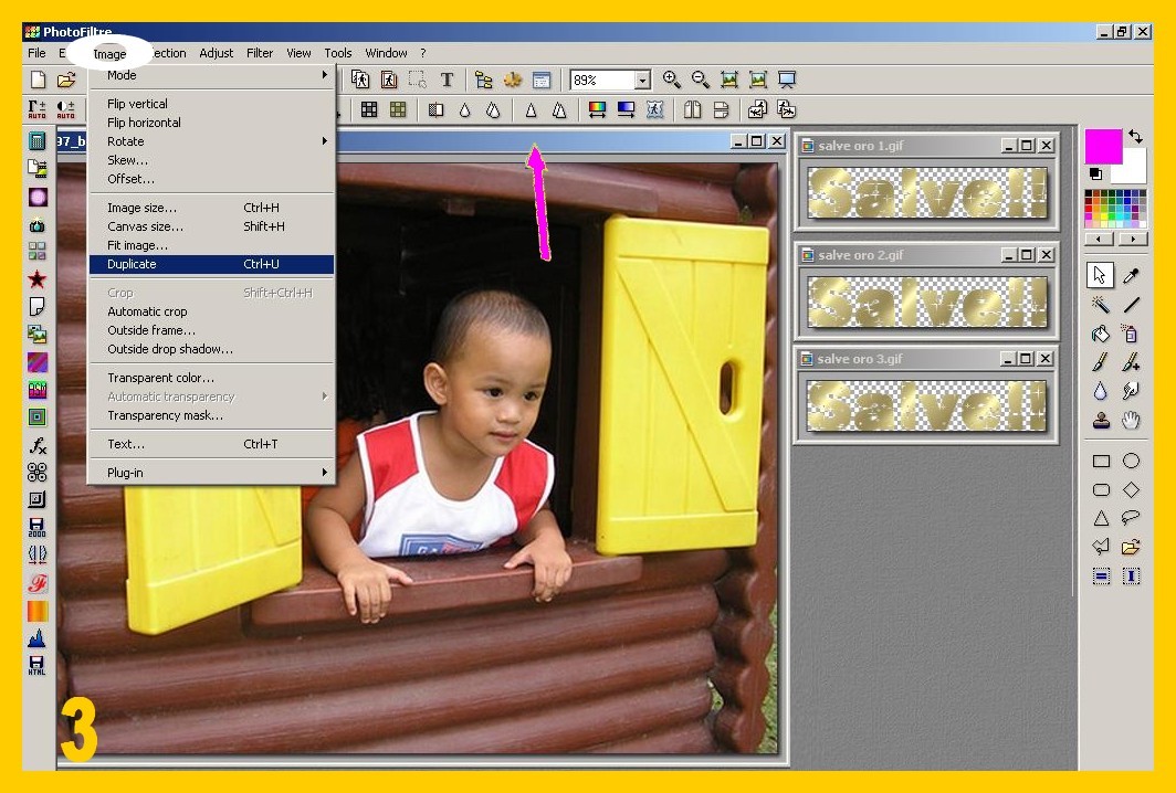 3. Aprite la vostra immagine in photofiltre : File – Apri (FILE – OPEN) (imm.3) ![]()