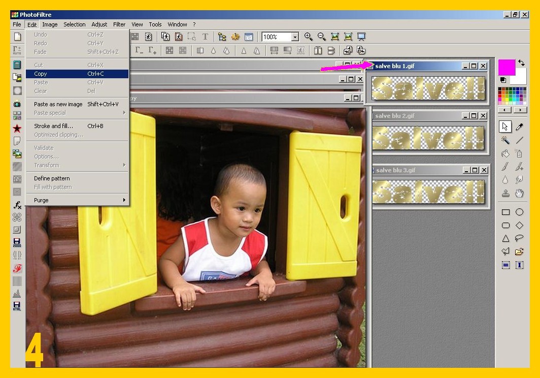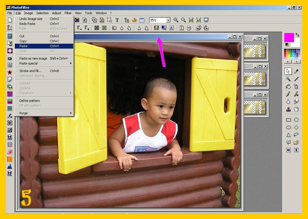 4. Ora toccate attivando la vostra prima immagine e la incollate: Modifica – Incolla (EDIT – PASTE) (imm. 5) ![]()