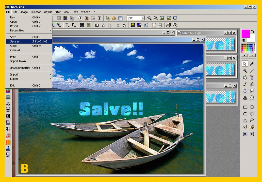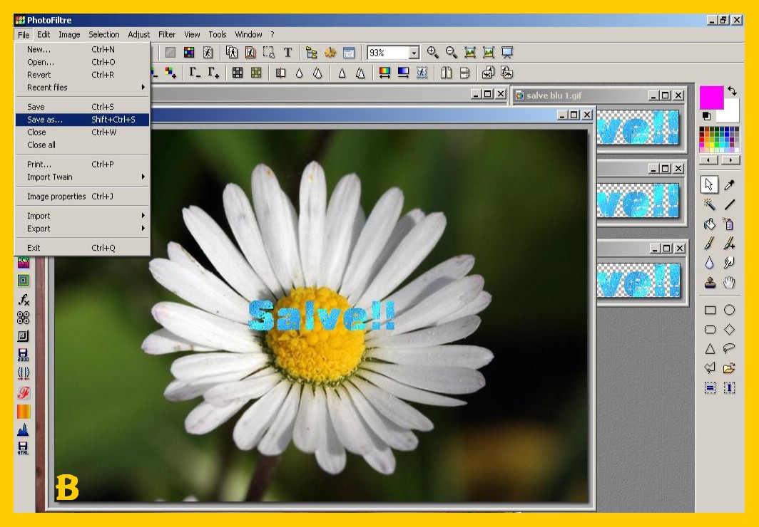 , salvarla ed avrete così la vostra prima immagine con scritta che salverete come gif e col numero 1. (File – Salva con nome) (FILE – SAVE AS) (imm. b).