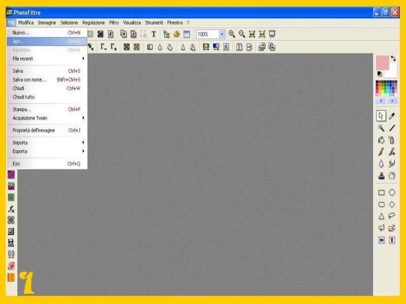Se hai Photofiltre in italiano Modifica lo trovi nel menù in alto subito dopo File e questo problema è risolto. Se non hai Photofiltre in Italiano nel link che ti ho messo prima trovi come scaricarlo in italiano e c’è spiegato come fare per farlo funzionare in italiano… Ti conviene farlo funzionare in italiano, comunque caso mai se hai la versione inglese modifica è Edit ed è sempre subito dopo File….