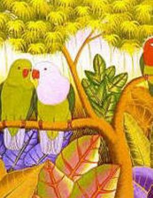La cassetta non era chiusa bene e i colori uscirono, cominciando a far chiasso e festa. Così nacquero tanti nuovi colori. Quando tornarono gli Dei si accorsero che i colori non erano più sette, ma molti di più e guardarono la cassetta. “Tu hai partorito i colori, tu ne avrai cura , così dipingeremo il mondo”. E salirono sulla cima del monte, e da lì cominciarono a lanciare i colori, così l’azzurro rimase parte nell’acqua e parte nel cielo, il verde cadde sugli alberi e sulle piante, il caffè, che era il più pesante, cadde sulla terra, il giallo, che era un risata di bambino, volò fino a tingere il sole, il rosso giunse sulla bocca degli uomini e degli animali che lo mangiarono, colorandosi così di rosso. Il bianco e il nero già esistevano. Gli dei lanciavano i colori senza fare attenzione a dove finivano, ed alcuni di essi spruzzarono gli uomini; per questo vi sono persone di diversi colori e di diverse opinioni. Allora, gli Dei, per non dimenticarsi dei colori e perché non si perdessero, cercarono un modo per conservarli; stavano pensando come fare quando videro il pappagallo. Lo presero e gli attaccarono i colori e gli allungarono le piume affinché ci stessero tutti.