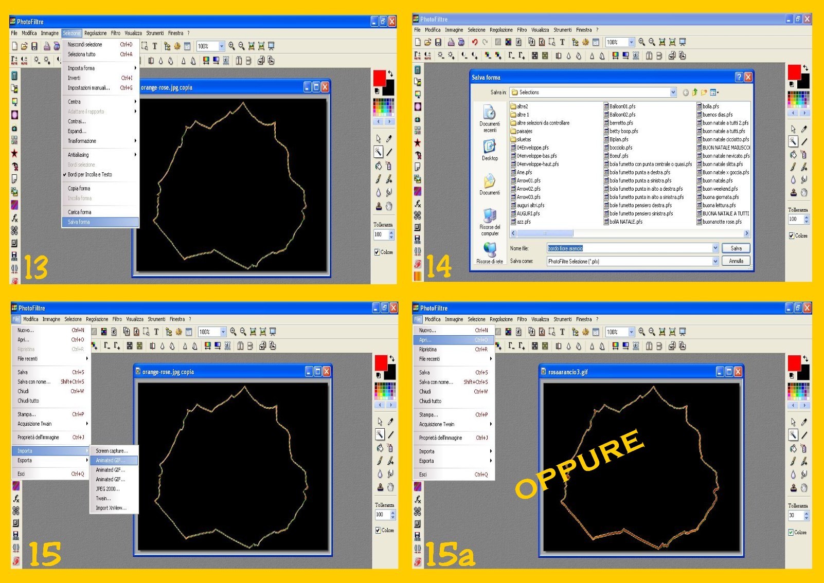 16. Tornate a cliccare in alto su Selezione – Inverti (SELECTION – INVERT) ora avete selezionato tutto il bordino dove metterete le vostre stelline (fra le due selezioni) che ora salverete cliccando di nuovo su Selezione – Salva Forma (SELECTION – SAVE SHAPE) (imm.15b)
