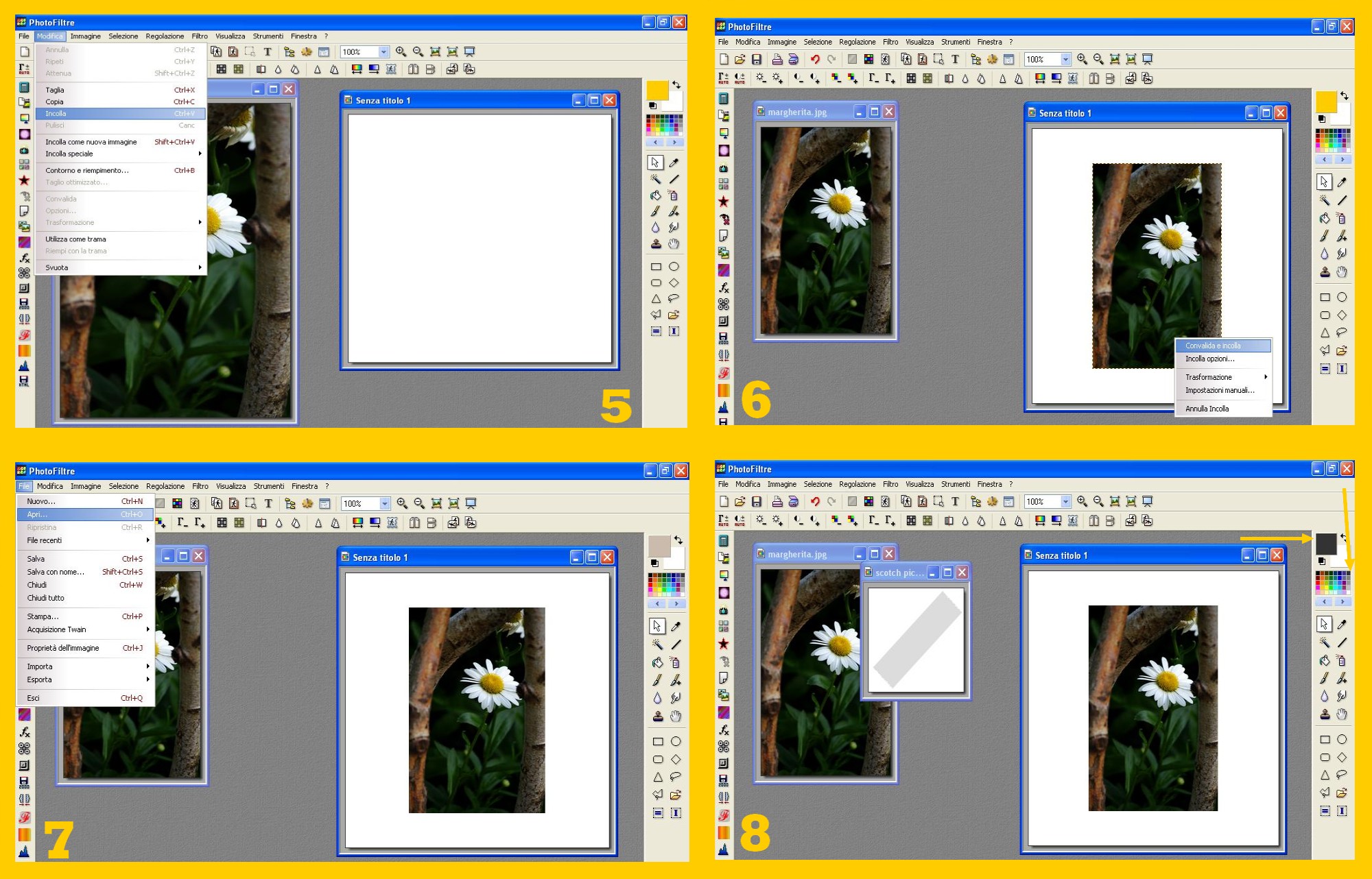 - Ora aprite in Photofiltre il pezzo di scotch che volete mettere sugli angoli: File – Apri (FILE – OPEN) (imm. 7)