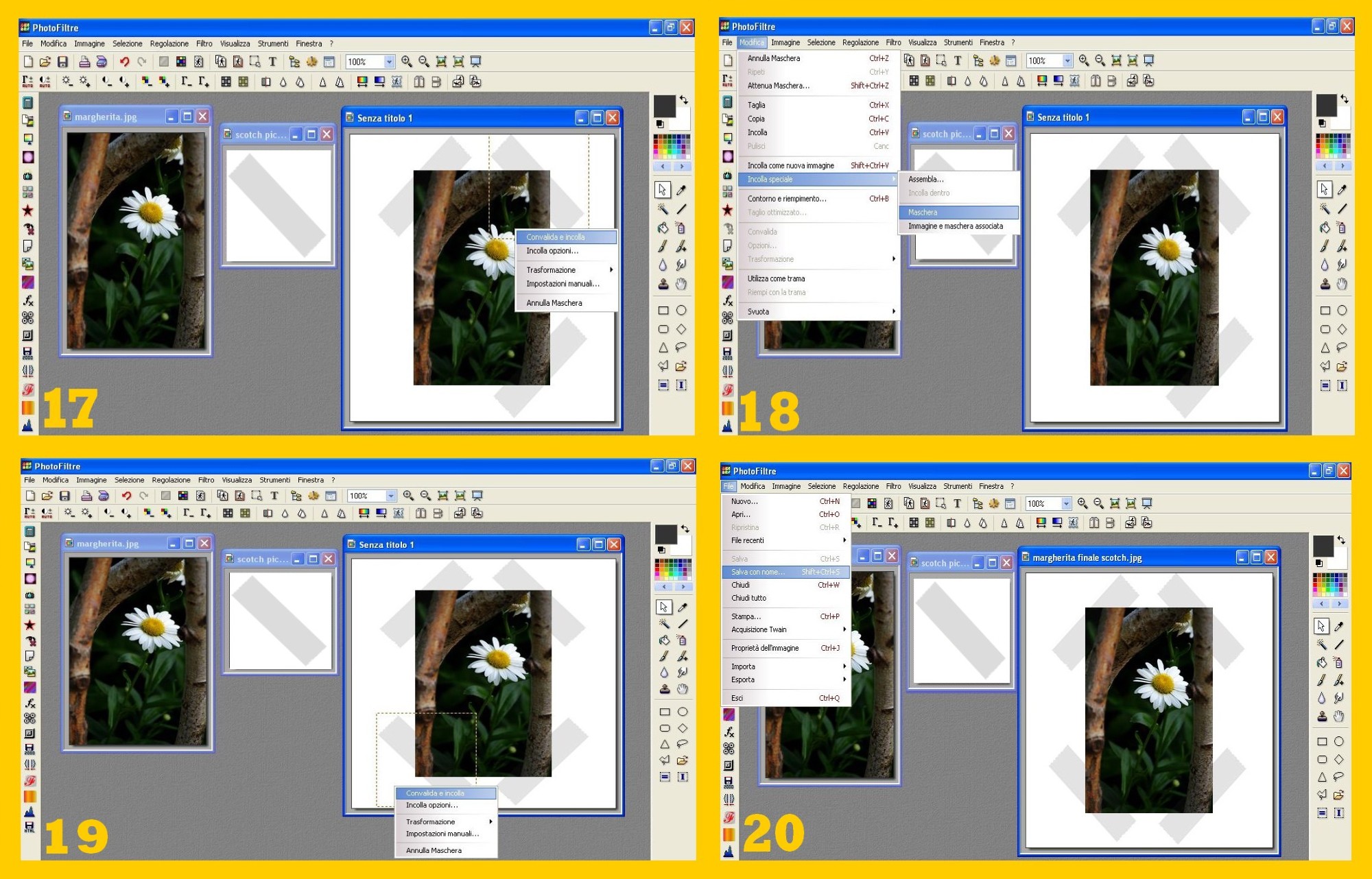 - La vostra foto “incollata” con lo scotch è finita. Potete ora salvarla: File – Salva con nome (FILE – SAVE AS) (imm.20)