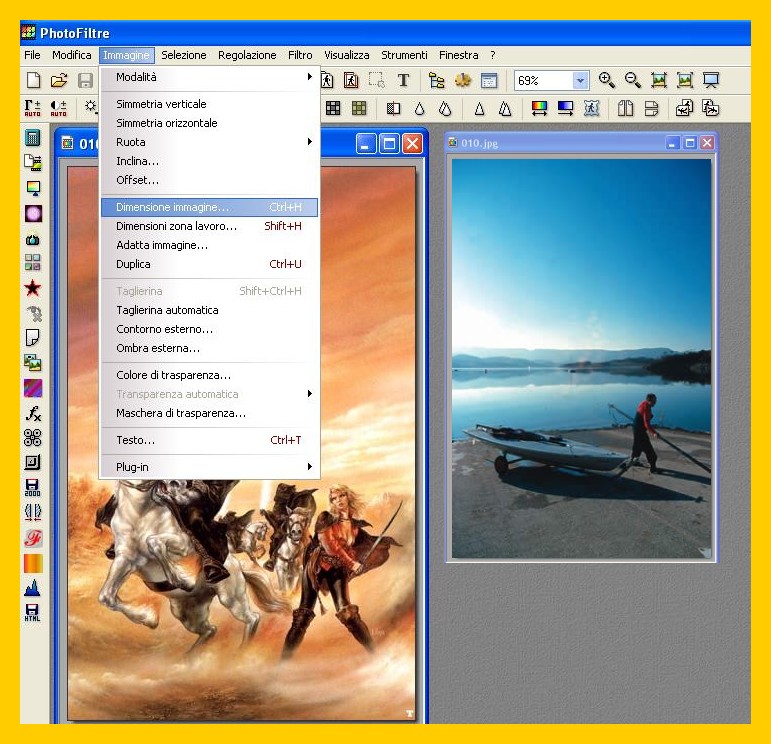 - due immagini di misura uguale o che voi renderete uguali in Photofiltre…