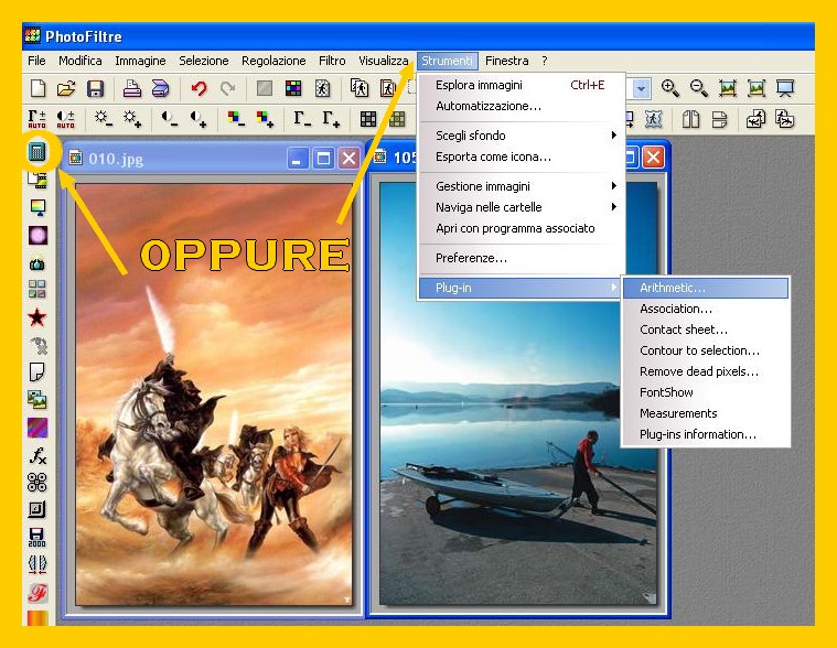 - Il plugin aritmetico che trovate fra i plugin di photofiltre nel sito ufficiale e potete scaricare mettendolo poi in photofiltre con questo percorso (risorse del computer/disco c/programmi/photofiltre/plugins)