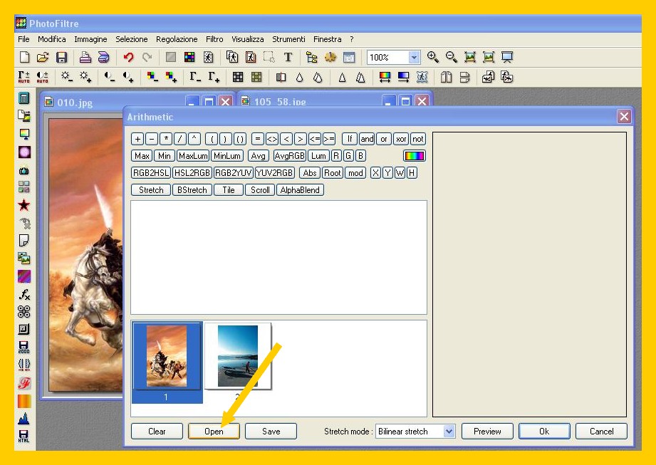 Aprite in Photofiltre le due immagini: File – Apri (FILE – OPEN)