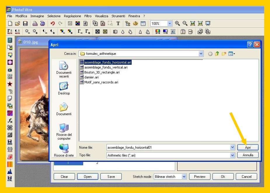 plugin che vi serve, sfogliando (col solito percorso: risorse del computer/ disco c/ photofiltre/ plugins/ plugin aritmetico). Lì troverete tutti i