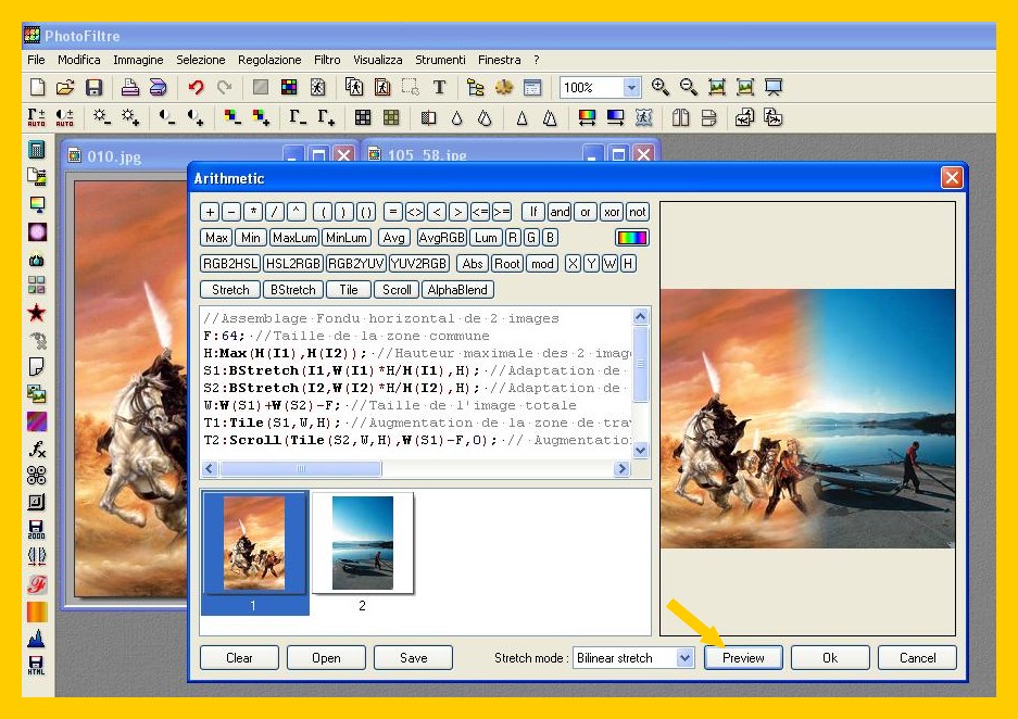 Vi apparirà la parte bianca della finestra di prima con un’ enorme formula. Per vedere se il risultato vi soddisfa cliccate sotto in Anteprima (PREVIEW). Ora, nel riquadro a destra, potete vedere il risultato della fusione.
