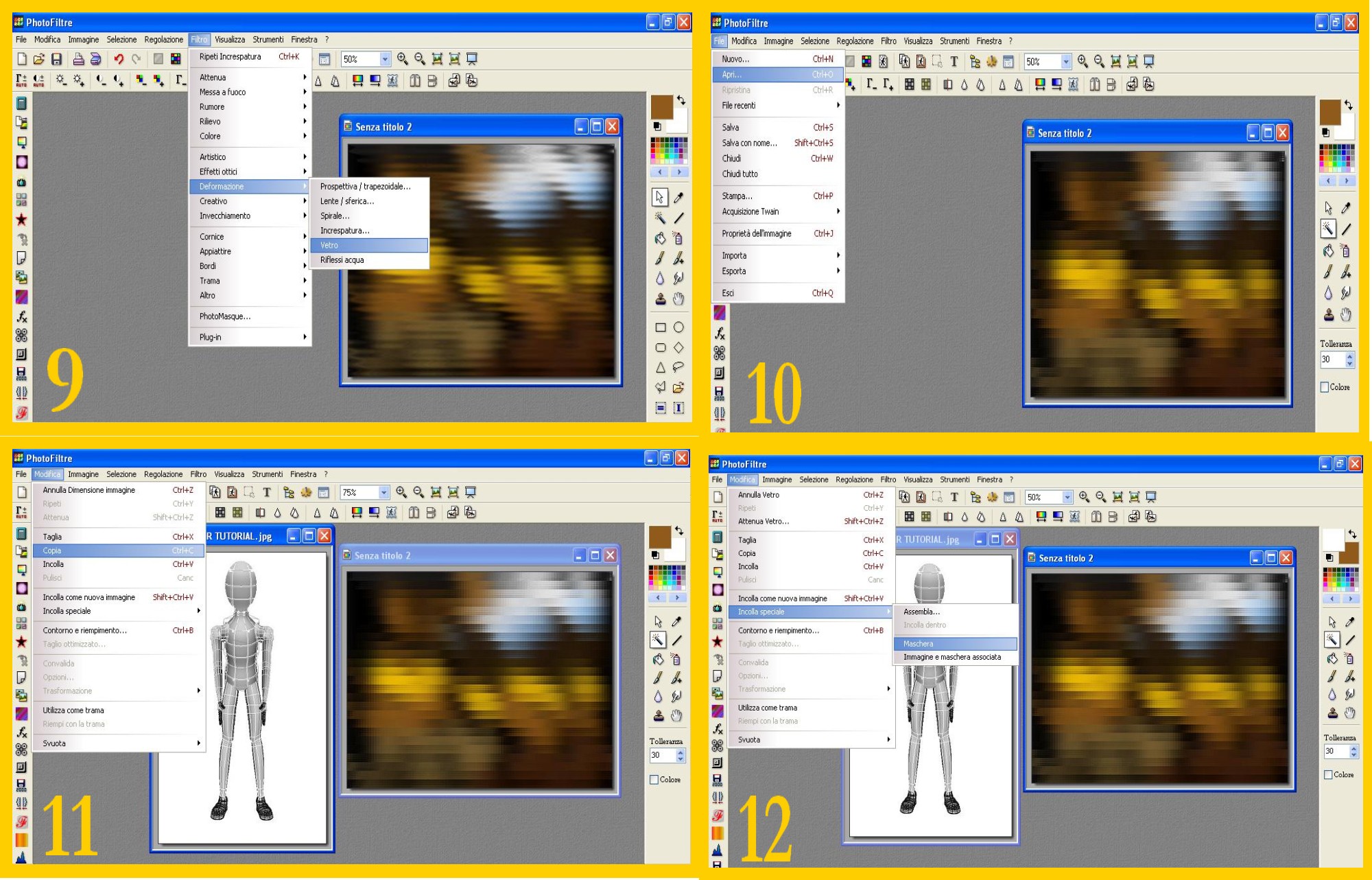 6. Ora andate di nuovo su Filtro – Deformazione – Vetro (FILTRE – DEFORM – GLASS). (imm.9) Ed ecco qua che il vostro sfondo è fatto… Logicamente potete ripetere i filtri quante volte volete se vi piace di più il resultato.