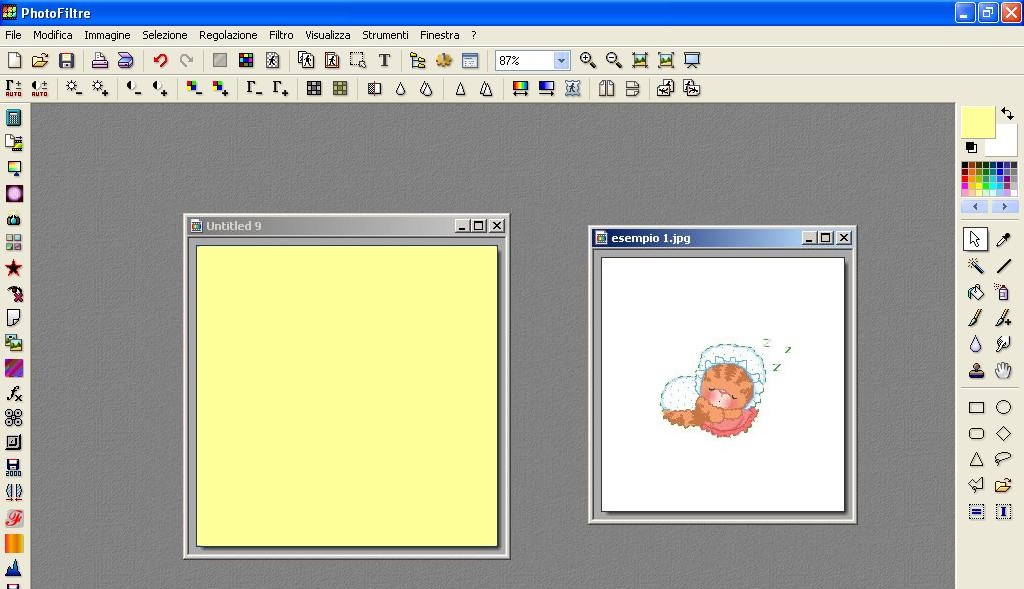 Ovviamente il colore può essere uno qualsiasi, io ho scelto apposta lo sfondo bianco per presentare il caso più difficile… La difficoltà nasce dal fatto che sia lo sfondo, come una parte del colore della gif sono uguali e se clicchiamo sull’ Icona di Trasparenza ci verrebbe trasparente anche il vestitino e la cuffietta. Se lo sfondo non fosse bianco, basterebbe cliccare sull’ Icona di Trasparenza ed avremmo lo sfondo trasparente.
