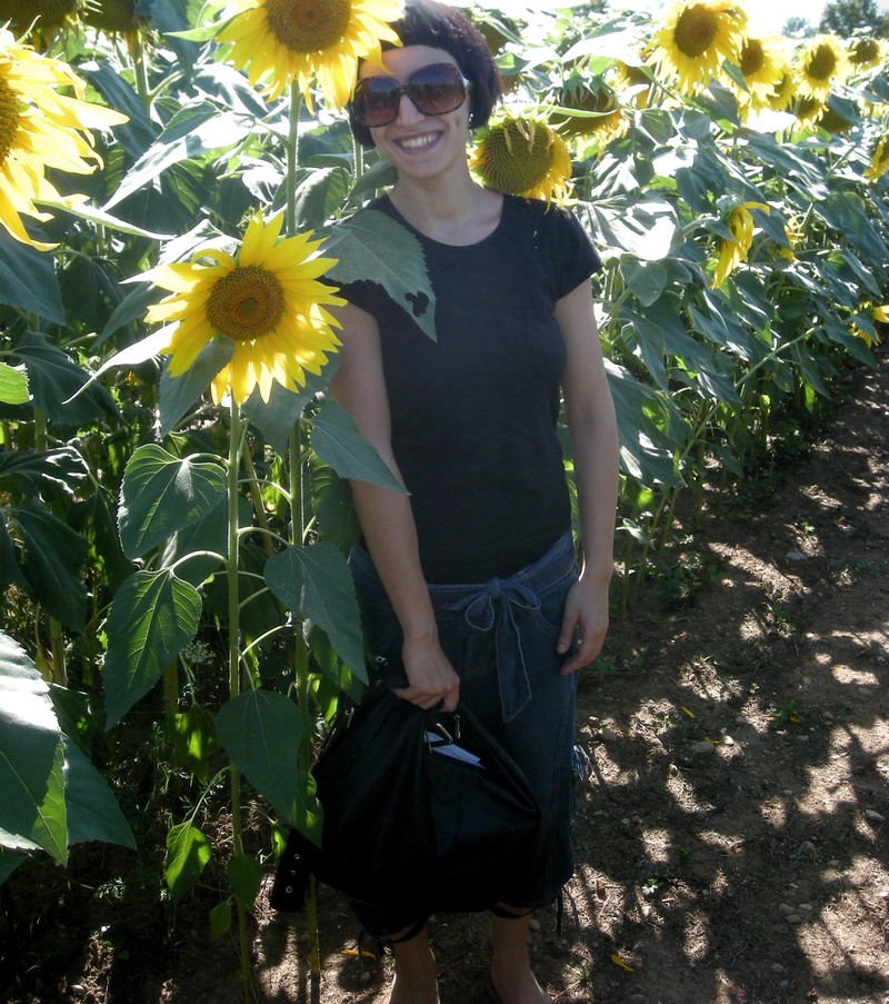 Senza perdere tempo ci siamo infilati nel labirinto di Cnosso… e lì, man mano si avanzava, diventava sempre meglio… Non abbiamo avuto fortuna con i girasoli, la maggior parte dopo la pioggia e, già un tantino grandi, hanno perso in buona parte la bella chioma gialla… ma, anche se non tutti nel loro massimo splendore, erano tantissimi e man mano si avanzava, uno dietro l’altro, per quello stretto percorso segnato tra di loro, diventavano sempre più alti… Io che non sono proprio gigantesca ne ero sovrastata e così quando i maschietti si sono attardati a far finta di essere gli eroici Indiana Jones che avrebbero salvato le “fanciulle” che si erano perse nel labirinto, non sapevano ormai più dove fossimo, perchè impossibile vederci noi minute lì in mezzo… In punta di piedi e saltellando col braccio teso, agitavo la mano per fare vedere in che punto eravamo e farci raggiungere, mentre ci rispondevamo gridando 😀