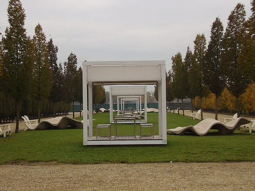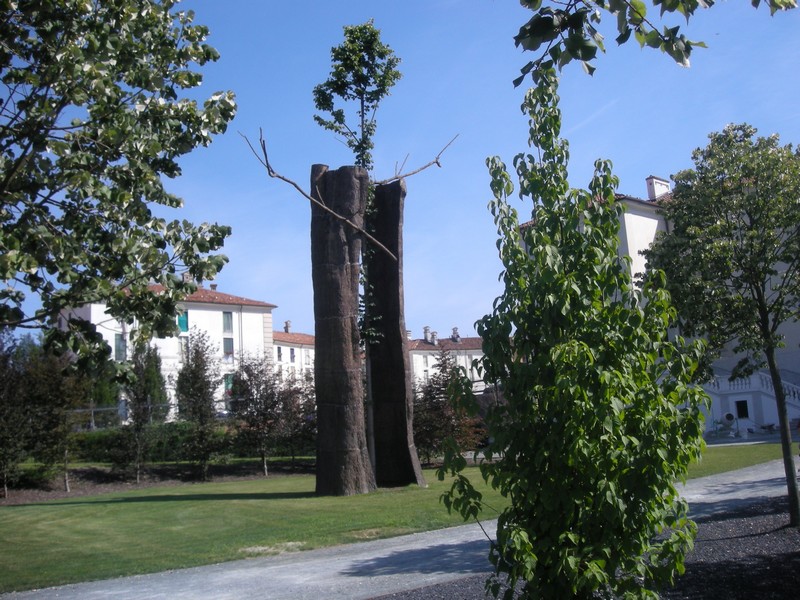 L’altra volta che sono stata alla Reggia aveva piovuto i giorni prima e piovigginava quello stesso giorno, i giardini erano nel mezzo dei lavori di recupero ed era molto ciò che ancora rimaneva da realizzare. Ora i giardini sono davvero tali… Alberi, prati e fiori attorniano la gran Peschiera dove ci sono le ninfee. Attorno tante panchine… Ci sono ovviamente le opere di Giuseppe Penone distribuite fra il muro lungo la Reggia e la Peschiera: i suoi alberi, siepi, pietre e la vasca che col movimento dell’acqua disegna una grande impronta digitale ma ci sono anche i resti archeologici della Fontana d’Ercole che oggi al posto dell’acqua fa scintillare al sole una miriade di cristalli, i tavolini colorati e le sedie…e tante altre cose…