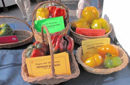 Sono 10 giorni di festa in cui si susseguono concerti e spettacoli, enogastronomia, tradizione e cultura popolare, mercati, spazi commerciali e tanto altro… Ma il vero protagonista è sempre lui… il peperone, venduto o degustato nella Piazza dei Sapori e “coccolato” da Slow food da parecchi anni. Anche se all’insegna della tradizione si degusta e si celebra ogni cibo “tipico” della nostra zona dal Coniglio Grigio al Porro lungo dolce, dal Salame di Giora, al Formaggio del Fengh e all Arquebuse (un antico liquore distillato dai monaci)… prodotti tutti della tradizione agroalimentare della zona.