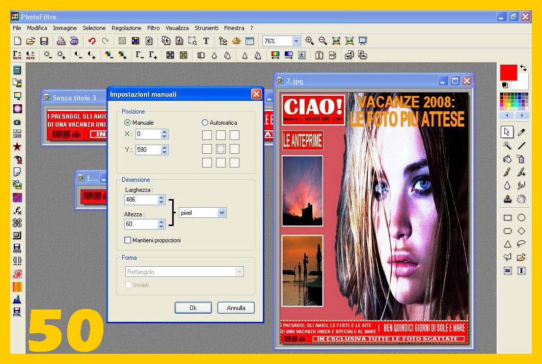 Ed ora incolliamo la nostra striscia in fondo alla copertina…e con i seguente parametri nella Impostazione Manuale : “x”= 0 e “y” = 590 (imm.50)