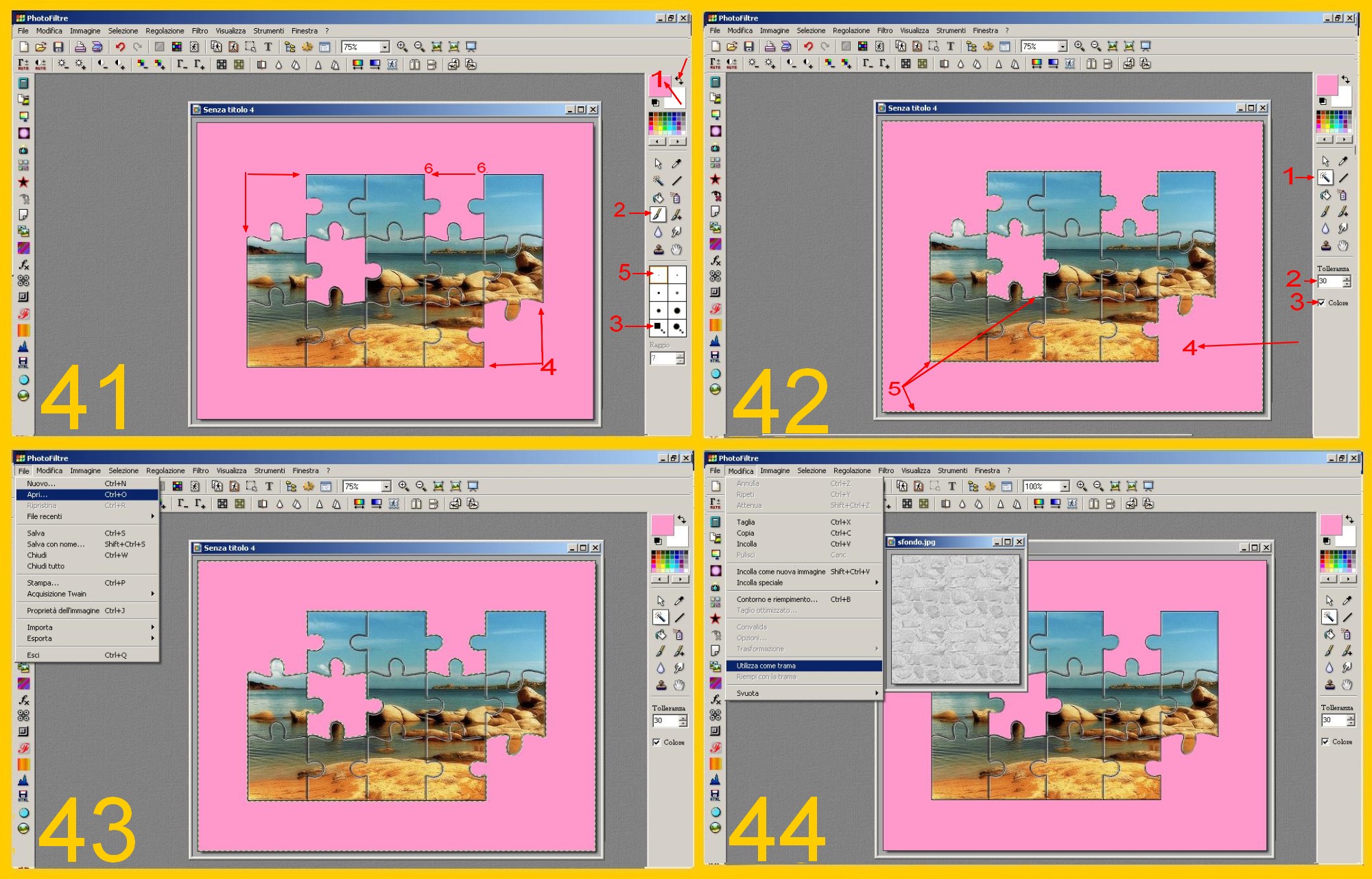 Aprite ora lo sfondo che dovrà avere il nostro puzzle: File – Apri (FILE – OPEN) (imm.43).