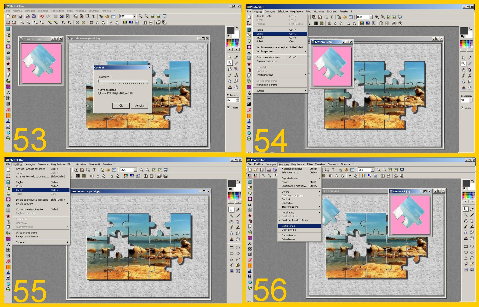 Toccate ora lo sfondo con il puzzle per attivarlo e cliccate su Modifica – Incolla (EDIT – PASTE) (imm.55).