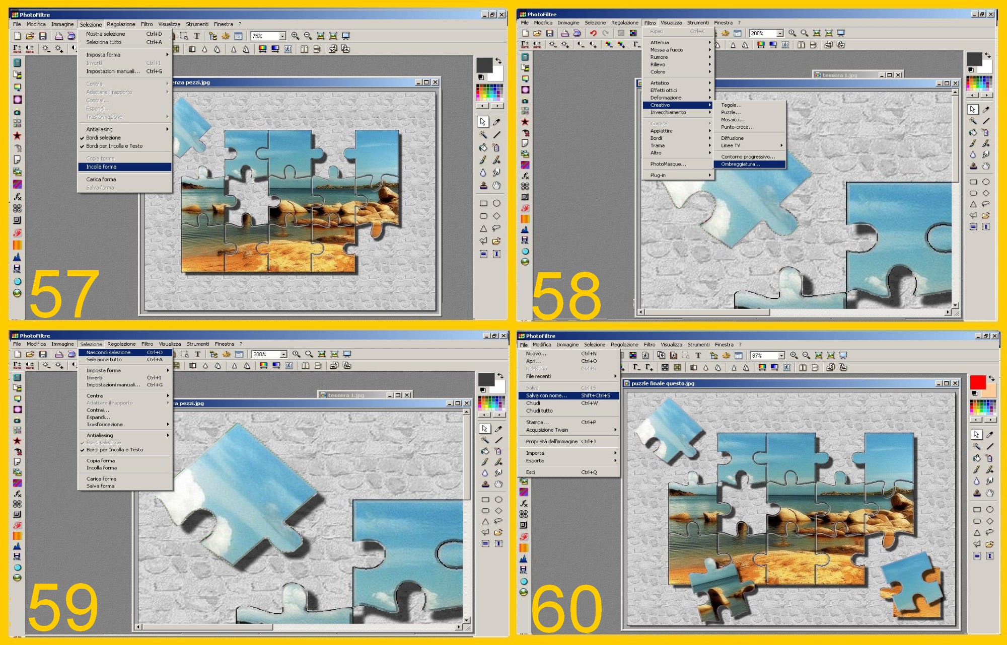 Il vostro puzzle è pronto e potete ora salvarlo: File – Salva con Nome (FILE – SAVE AS ) (imm.60)