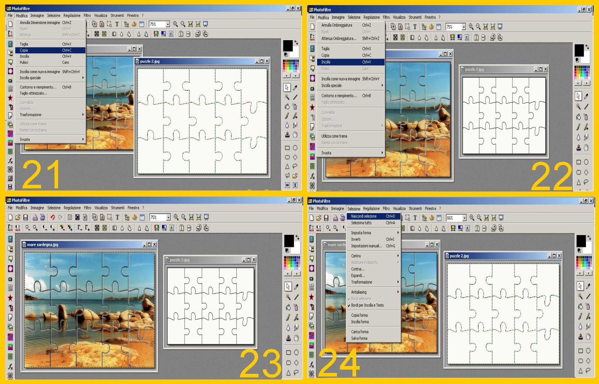 Toccate il puzzle attivandolo e cliccate su Modifica – Incolla (EDIT – PASTE) (imm.22).