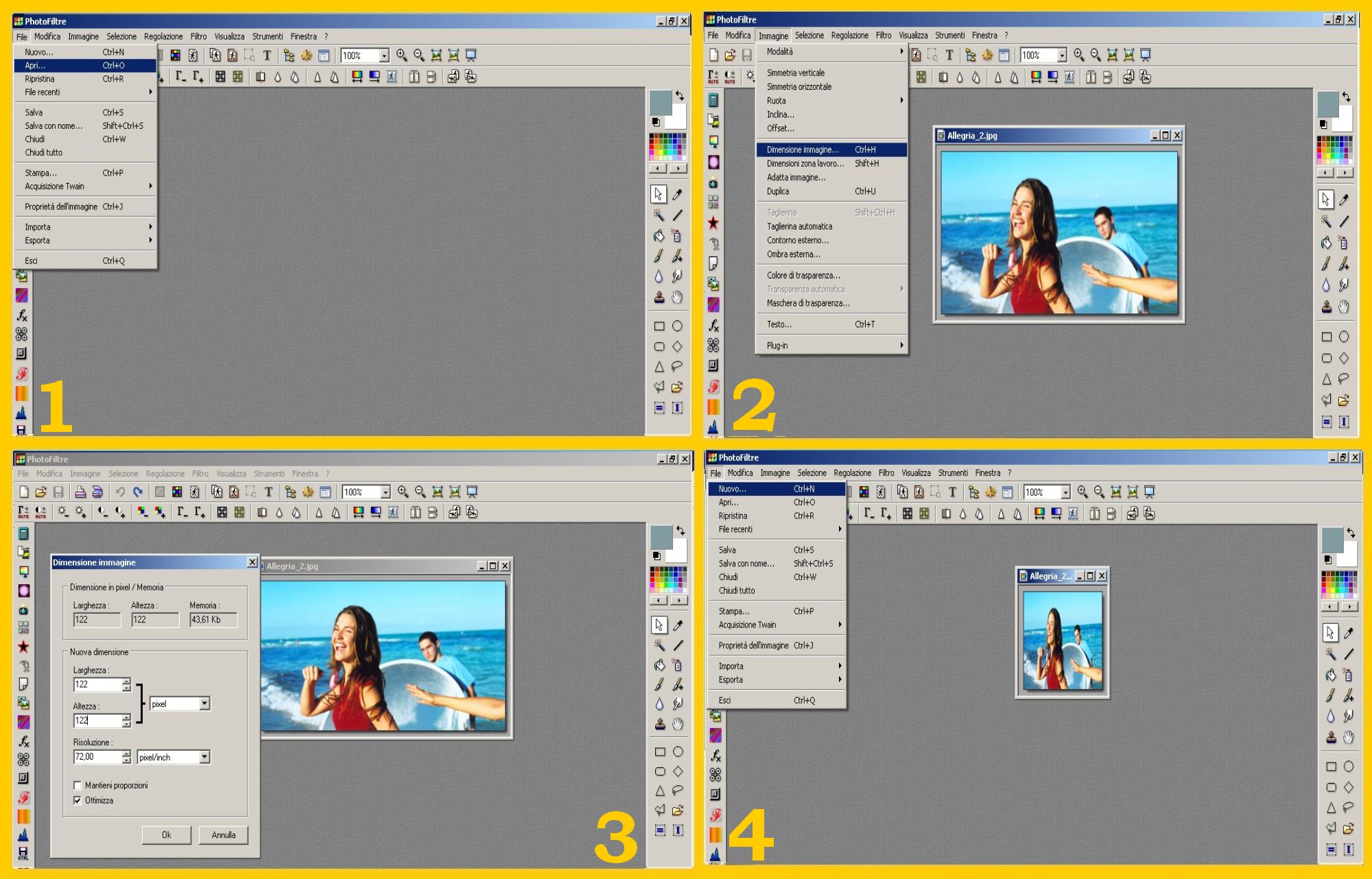 Aprite la vostra immagine in Photofiltre: File – Apri (FILE – OPEN) (imm.1)