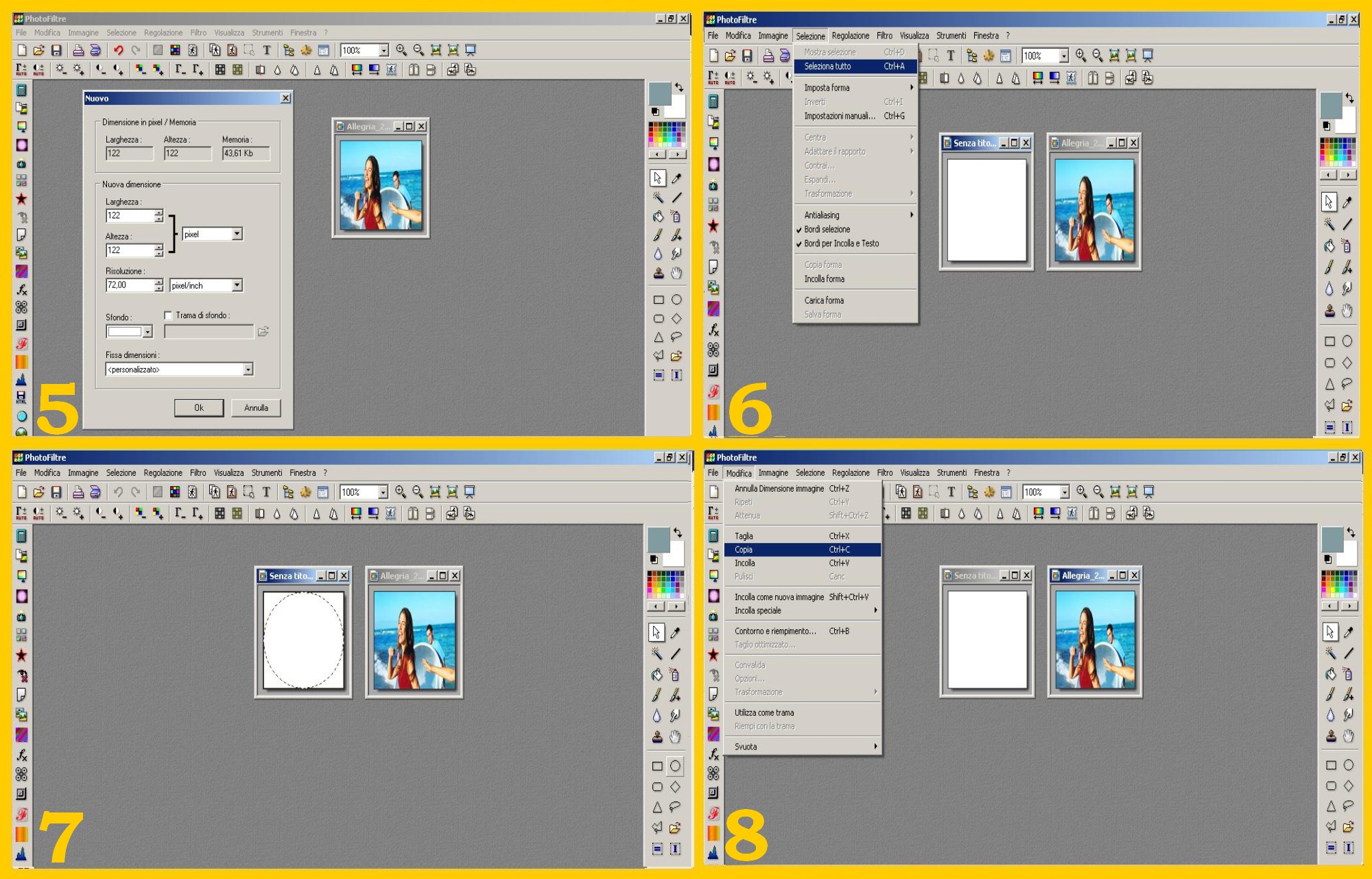 Toccate ora la immagine con cui volete fare la spilla per attivarla (la parte azzurra in alto all’immagine diventa di un azzurro più deciso) e cliccate su Modifica – Copia (EDIT – COPY) (imm.8 ).