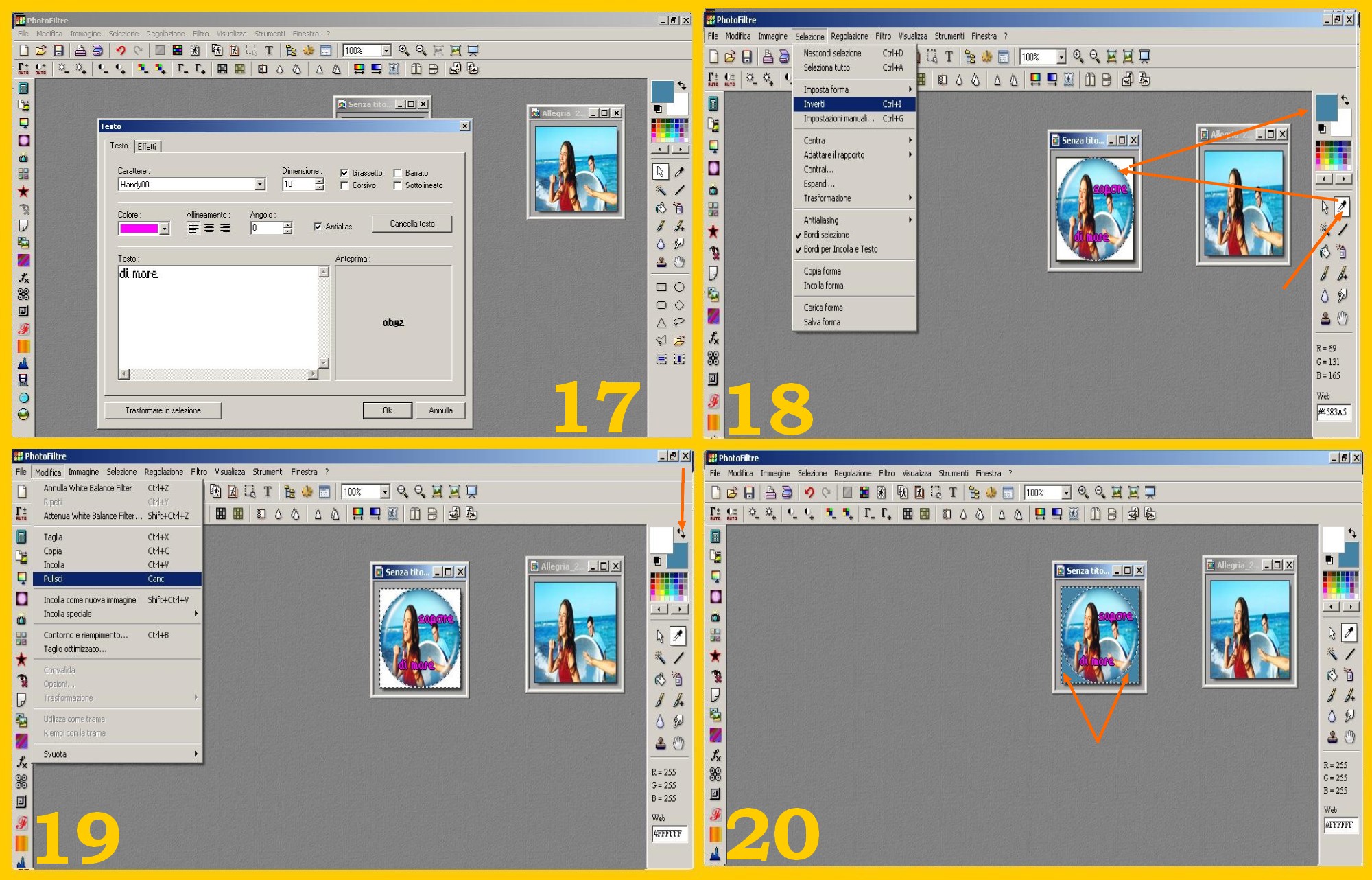 Se pensate di scrivere qualcosa sopra cliccate sulla T del menù e procedete ora a farlo (imm. 17).