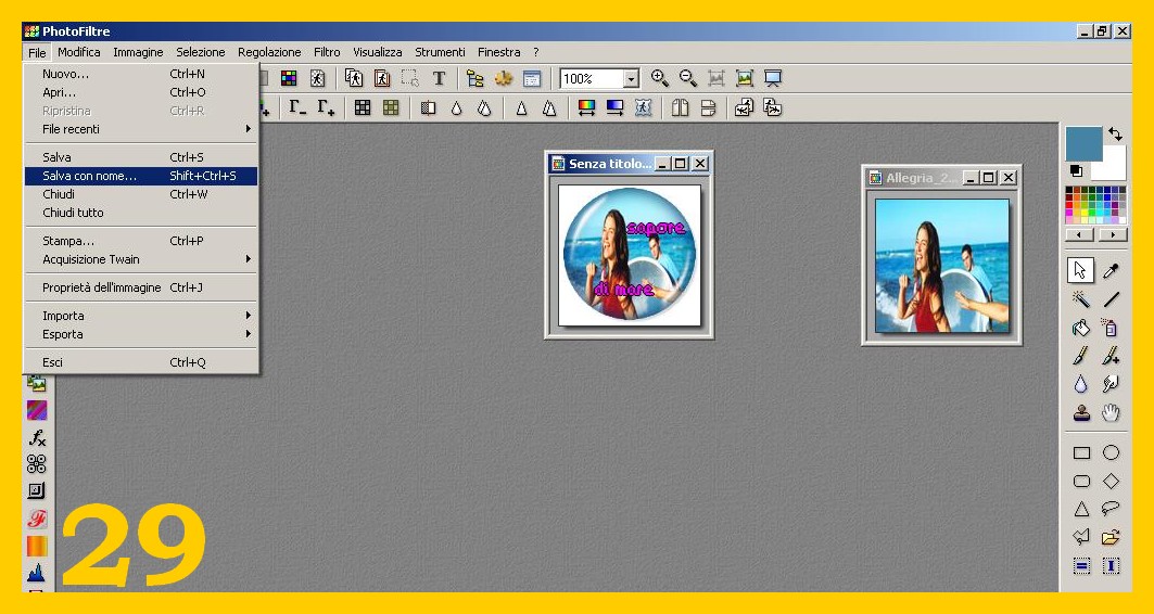 Aprite la vostra immagine in Photofiltre: File – Apri (FILE – OPEN) (imm.1)