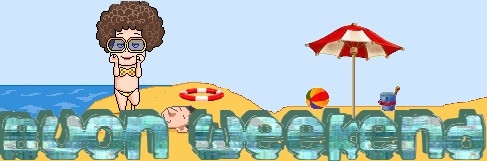 che scrivere buon weekend con acqua di mare poteva essere un buon modo d’immaginare almeno l’odore… e messami a pensare al mare ho aggiunto una gif con tanto di sabbia e persone sulla spiaggia che spero sia augurante del buon tempo che forse questo weekend non sarà così scontato…