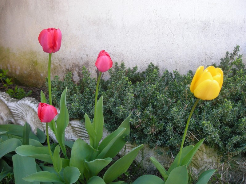 Ma oggi ha fatto un bel sole e una temperatura giusta ed ecco, nel mio giardino finalmente sono fioriti i tulipani!!…. tanto si sono fatti desiderare che non ho resistito e ve li faccio vedere 😆