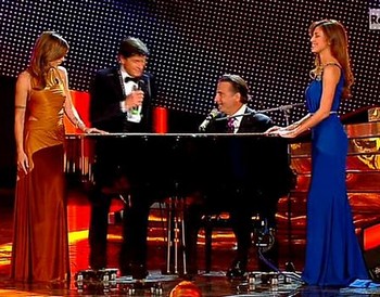 Nell’attesa omaggio a Fellini con un balletto della bella Belen. Belen canta bene, balla discretamente ed è bella. Si può chiedere di più? Questo festival è per lei una grossa oportunità per farsi aprezzare per motivi un po’ più consistenti che le notizie di gossip che la riguardano.