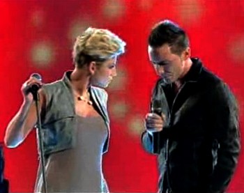 Luca e Paolo con un breve sketch sul parallelismo fra Morandi e Berlusconi introducono Luca Barbarossa e Raquel del Rosario che cantano “Fino in fondo”. Coppia ben affiatata anche se questa sera si è sentita un po’ di più la tensione. Mi piacciono comunque sempre. 🙂