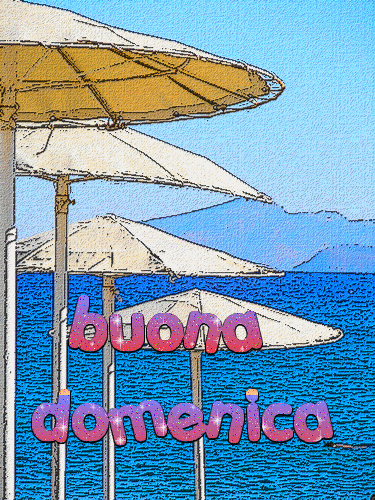 E per chi, come me, lontana dal mare e dai luoghi di vacanza e costretta in città,  non può far altro che immaginare un mare finto  colorando con righe approssimative bianche e blu una cartolina ed un ombrellone… 🙂
