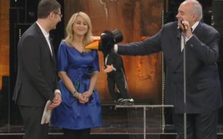 Anticipato da Laura Chiatti, arriva Albano e dato che un sondaggio ha decretato che la sua Felicità è la canzone simbolo di Sanremo…allora con la Chiatti e la Littizzetto (quasi assordata), che può fare se non ricantarla? 😀
