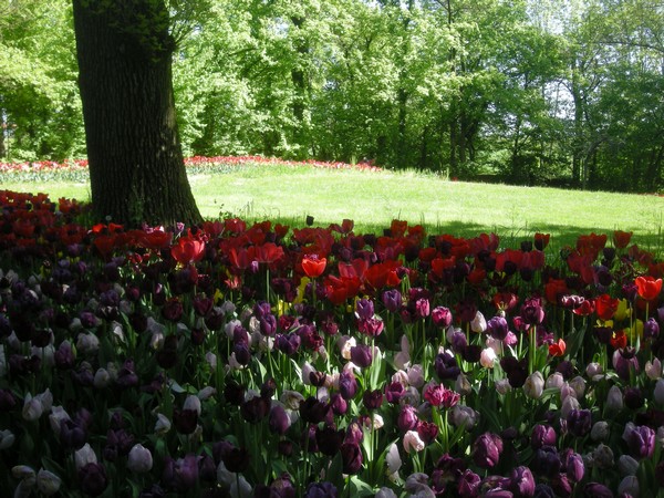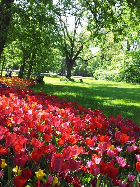 … e come sempre, nel parco coloratissime macchie di bellissimi tulipani seguono il percorso….
