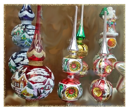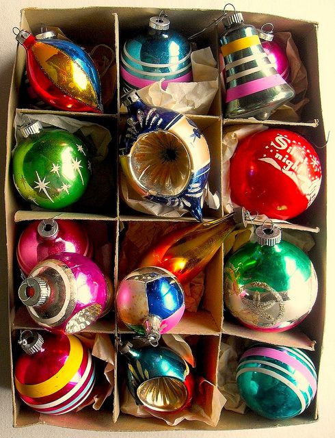 Fra gli ornamenti più diffusi con cui addobbare gli alberi di Natale si possono citare le caratteristiche palline (in realtà non sempre sferiche: ne esistono innumerevoli varianti, per esempio coniche, a forma di campanella, di pigna e così via) che, negli anni 50-60, erano realizzate in vetro soffiato generalmente ricoperte da una vernice colorata e riflettente, o spruzzate d’argento, oro, o bianco. Anche ora si usano fiocchi colorati di tessuto; sono molto diffusi i festoni e i fili perlati.