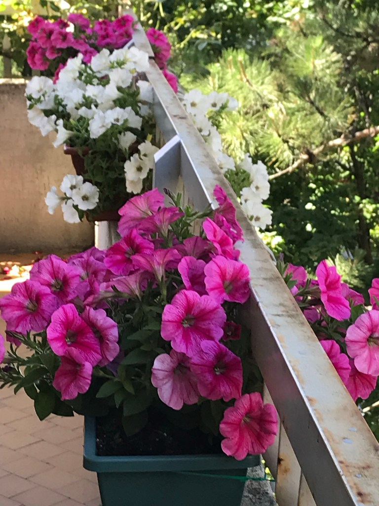 Un balconcino, di quelli che alzi lo sguardo, lo vedi e ti riempi di grazia e profumo.