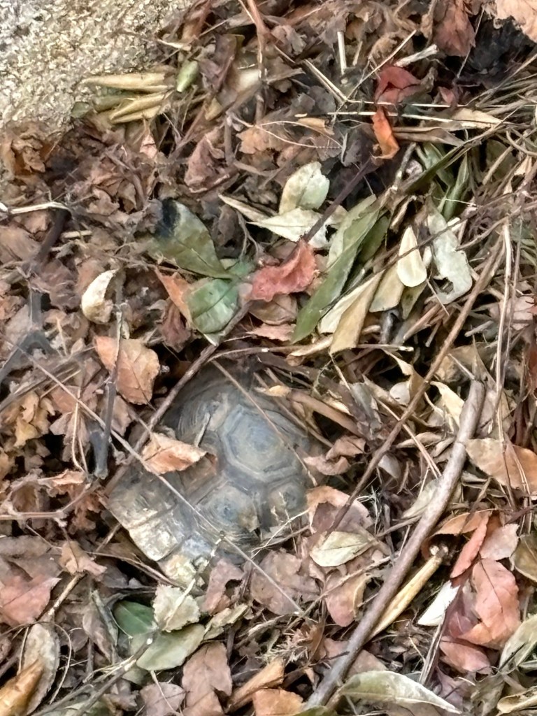 Io le ho come sempre preparato un bel letto di foglie 🍂 per il suo letargo che però lei cominciava ad usare verso ottobre e dato che ancora non siamo in autunno, meteorologicamente parlando, mi sono molto meravigliata quando ho visto che si era già quasi ben sistemata dentro il suo letto erboso! 😲