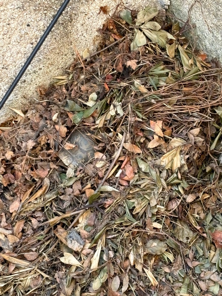 Da stanotte però è arrivato un vento gelido da nord con tanta pioggia ⛈️ e la temperatura è scesa a 13 gradi o forse anche meno. Ecco perché la mia tartaruga meteorologa con un po’ di anticipo si era preparata per affrontare al meglio questa situazione forse un po’ anomala anche per il suo standard.