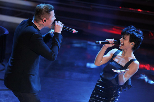 DJ Fargetta ed un nutrito gruppo di giovani ballerini accompagnano oggi Loredana Bertè e Gigi D’alessio in una versione remixata del loro brano. Gran ritmo e allegria che da una marcia in più alla serata, per un momento dall’Ariston siamo finiti in discoteca. Ci riportano all’Ariston ed ad un’atmosfera molto soft Chiara Civello e Francesca Michielin, al piano entrambi.