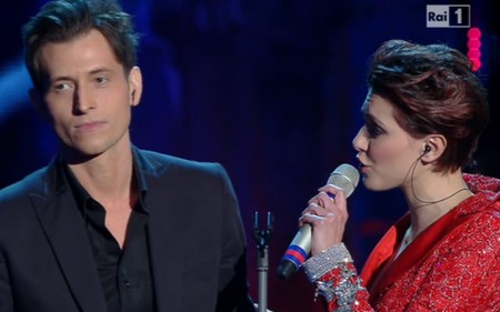 Si era tanto parlato della coppia gay che sarebbe apparsa sul palco. Si son limitati seduti e sorridenti a farci leggere la loro storia di amore lunga 11 anni in un breve riassunto scritto conclusosi con la notizia che il 14, san Valentino, si sposeranno a New Yord dato che in Italia non è possibile. Un modo delicato e carino di spiegare, molto più convincente di tante discussioni e dibattiti a cui ci ha abituato la nostra tv ma che poco c’entrerebbe in un festival di canzoni pur aprezzandone contenuto ed intenzioni.